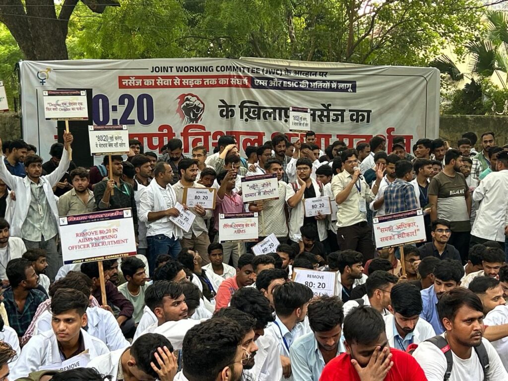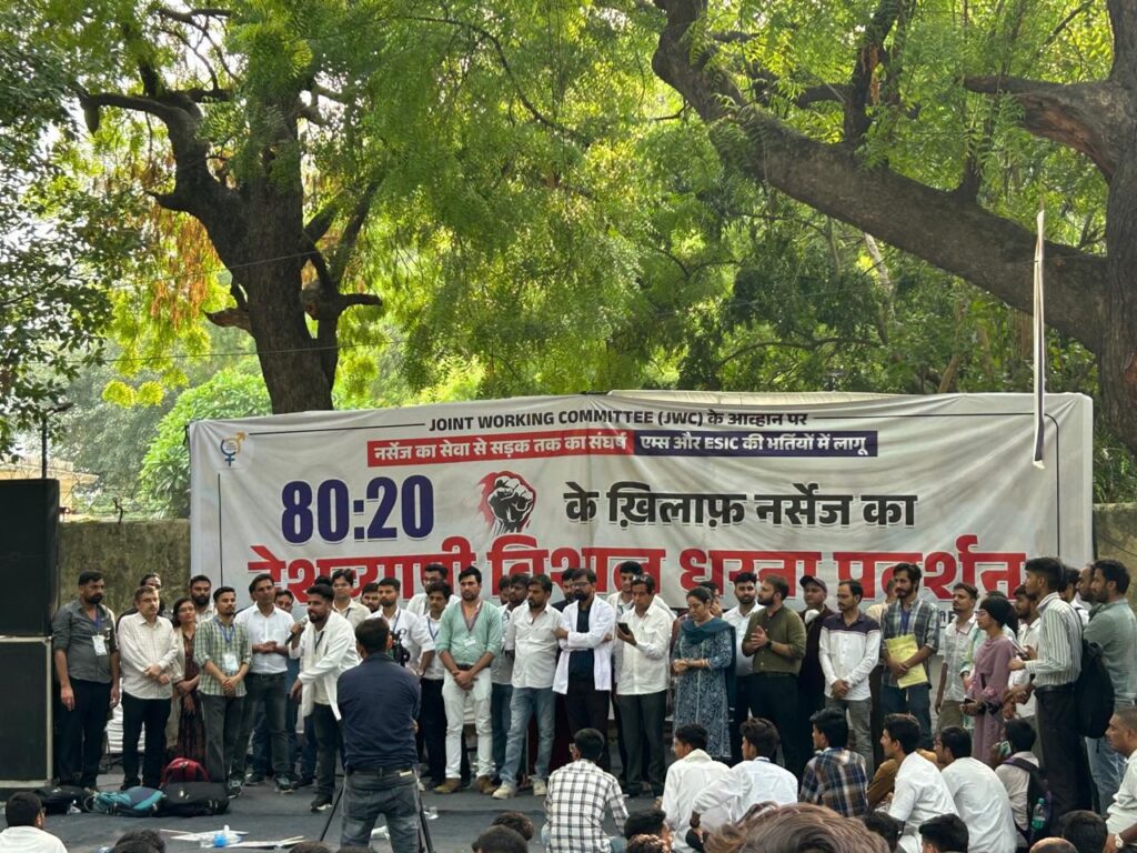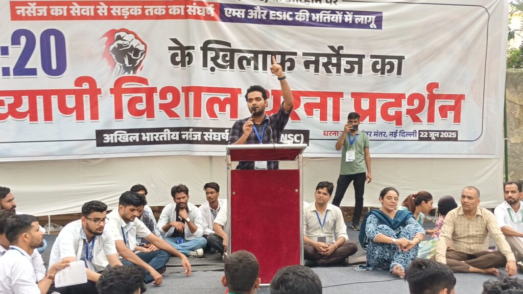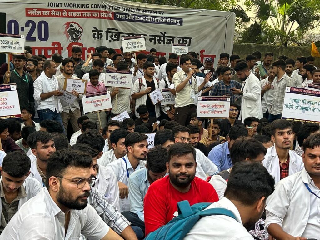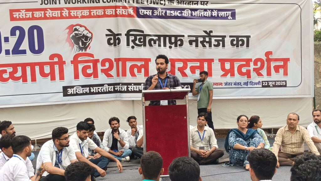 नर्सेज का सेवा से सड़क तक का संघर्ष एम्स और ESIC की भर्तियों मे लागू हो हमारी मांगे पूरी नहीं हुई