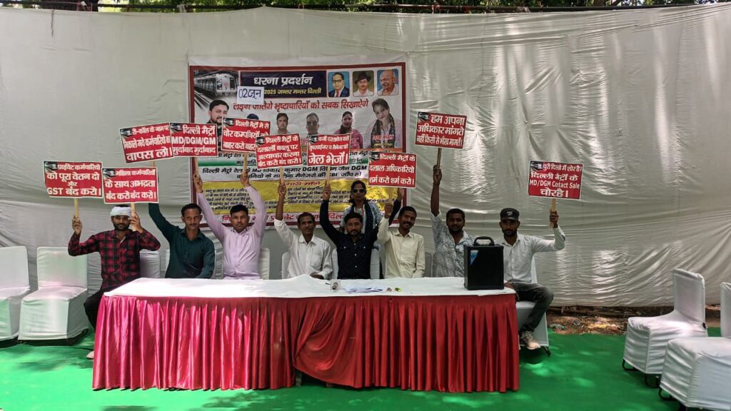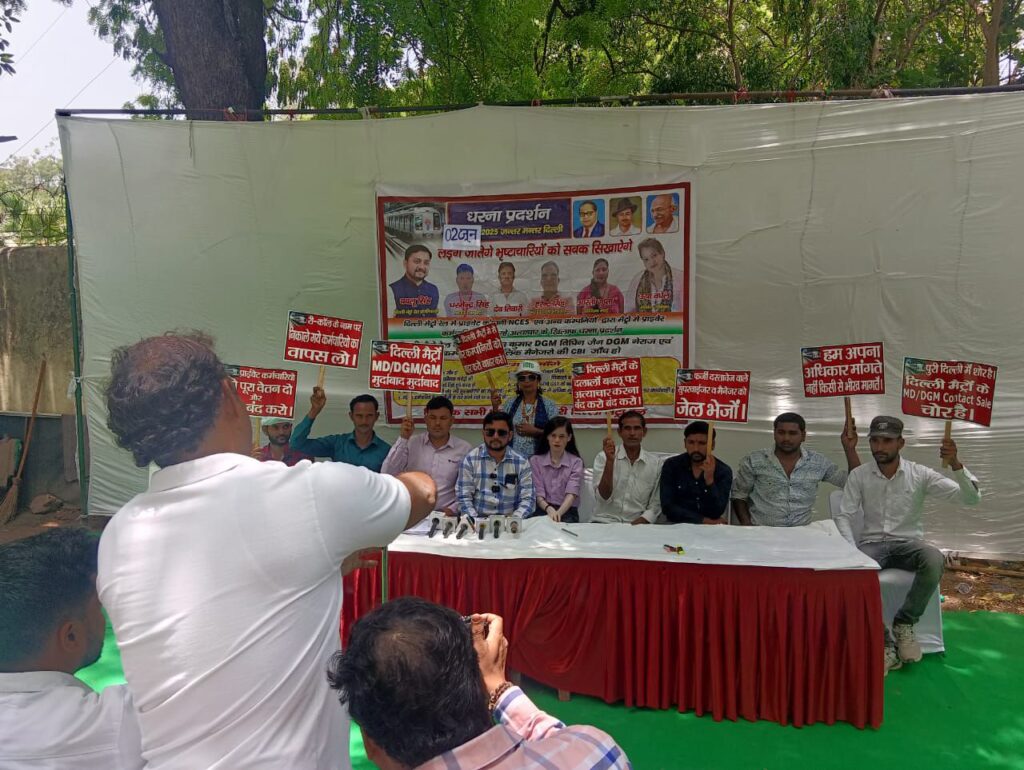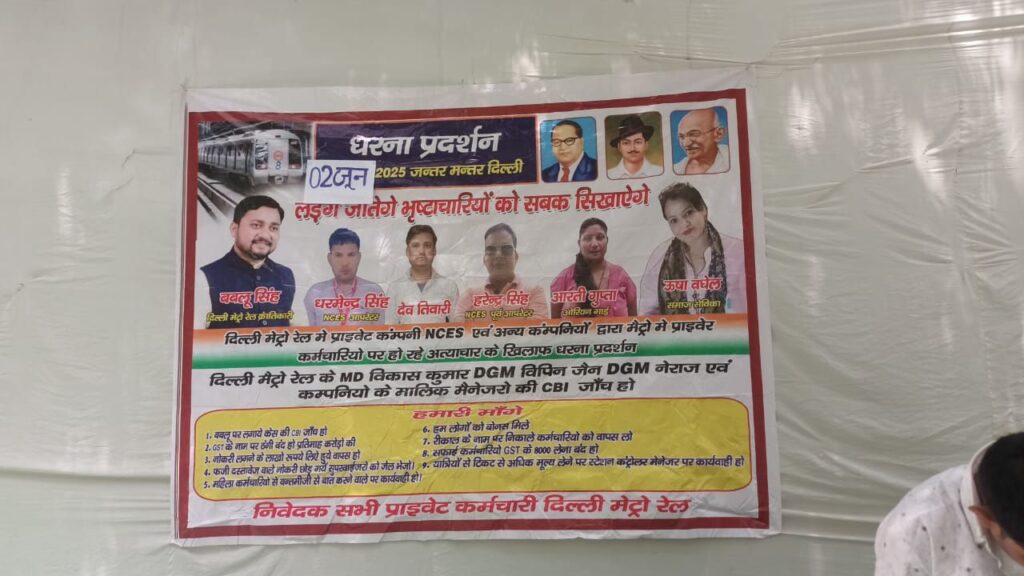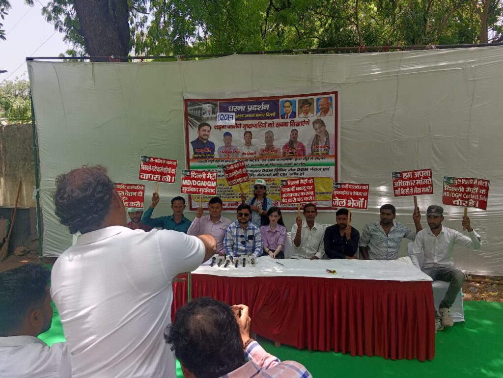 दिल्ली मेट्रो रेल में प्राइवेट NCES कर्मचारी धर्मेंद्र सिंह ने बताया की दिल्ली मेट्रो रेल में लाखों रुपए नौकरी के लिए जाते हैं उसके बाद नौकरी मिलती है इसी का शिकार हुए धर्मेंद्र सिंह ने बताया कि हमने ब्याज पर लेकर के डेढ़ लाख रुपए दिए थे तब मुझे नौकरी मिली थी इसका मेरे पास एविडेंस है ऑनलाइन ट्रांजैक्शन साथ ही हर महीना जीएसटी के नाम पर तनुखा का 40% सुपरवाइजर द्वारा वसूला जाता था मैंने अपनी शिकायत कंपनी के मालिक एवं दिल्ली मेट्रो के बड़े अधिकारियों को दी मगर मेरी कोई सुनवाई नहीं हुई दिल्ली मेट्रो रेल में प्रत्येक कर्मचारी के साथ इसी तरीके का शोषण उत्पीड़न अत्याचार होता है जो अपनी आवाज उठाता है उसको नौकरी से निकाल दिया जाता है मैंने डेढ़ लाख रुपए ब्याज पर ले करके दिए थे इसी तरीके से इस कंपनी में दिल्ली मेट्रो के बड़े अधिकारियों का संरक्षण मिला हुआ है क्योंकि उनको भी इस पैसे की हिस्सेदारी उनको भी मिलती है दिल्ली मेट्रो के खिलाफ 3 साल से लगातार धरने चल रहे हैं मगर किसी को न्याय नहीं मिलता है उसको नौकरी से बाहर निकाल दिया जाता है इसी तरह मैंने अपनी आवाज को उठाया अपने ऊपर शोषण उत्पीड़न अत्याचार की आवाज लगाई तो मुझ पर प्रशासन द्वारा गलत आरोप लगाकर नोटिस भेजा गया उसके बाद प्रूफ ना होने के बाद वह नोटिस वापस लिया गया मैं बहुत परेशान हूं मुझे न्याय मिलना चाहिए इसी तरह नेहा NCES कर्मचारियों ने बताया उनको भी नौकरी से निकाल दिया गया रीजनिंग के नाम पर पैसे ना देने पर जीएसटी के नाम पर पैसे ना देने पर और उन्होंने बताया कि मैं अनुसूचित जाति से आती हूं तो मुझे उसे तरीके का कंपनी के पड़े अधिकारियों अनुसूचित जाति का प्रयोग किया क्या मैं दलित समाज से आती हूं तो क्या मैं नौकरी नहीं कर सकती दिल्ली मेट्रो रेल में हर एक प्राइवेट कर्मचारी के साथ शोषण उत्पीड़न अत्याचार होता है चाहे वह सफाई कर्मचारी हो चाहे गार्ड हो चाहे टॉम ऑपरेटर हो कहीं पर किसी की कोई सुनवाई नहीं होती है और NCES कंपनी में फर्जी बाड़ा लंबे समय से चल रहा है जिसमें कंपनी के मालिक के भाई साहिल खन्ना लव सिंह और महिपाल सिंह लंबे समय से सुपरवाइजर में फर्जी दस्तावेज पर काम कर रहे थे कंप्लेंट होने के बाद उनका नाम लिस्ट से हटाया गया दिल्ली मेट्रो रेल की सीबीआई जांच होना चाहिए बड़े अधिकारियों की और कंपनियों के मालिक और मैनेजर की